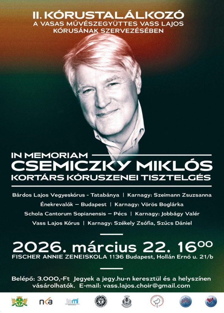 • 16:00 – 17:00, 2026.03.02. – II. Kórustalálkozó (In memoriam Csemiczky Miklós)
